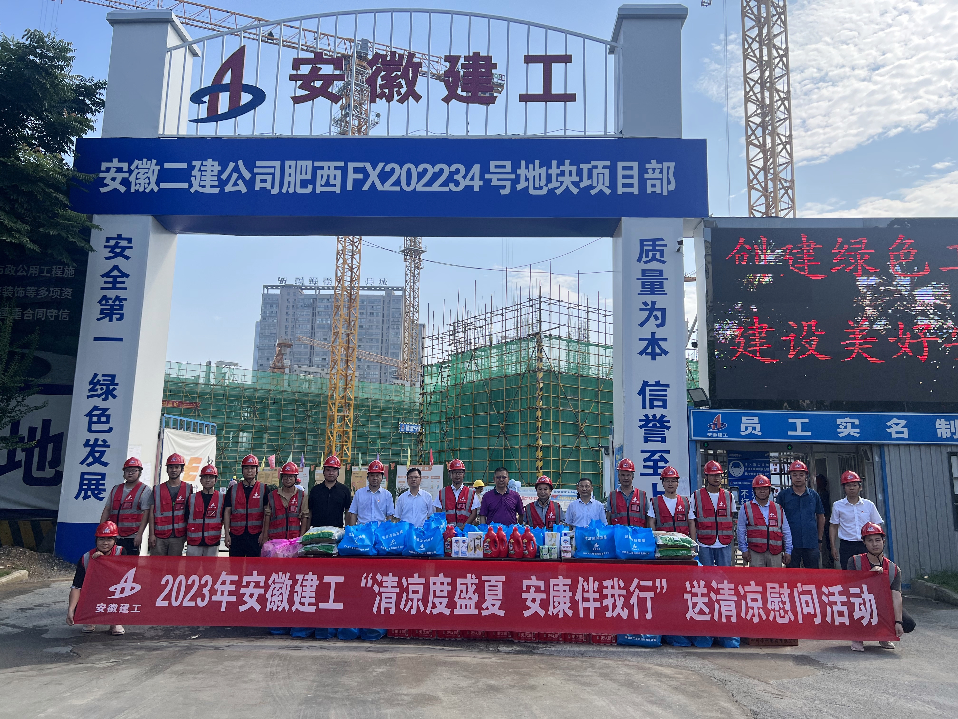 7月26日上午,建工控股党委委员、总会计师王淑德赴建工二建第四公司肥西FX202234号地块项目开展学习贯彻习近平新时代中国特色社会主义思想主题教育专题党课报告会暨“送清凉”慰问活动。