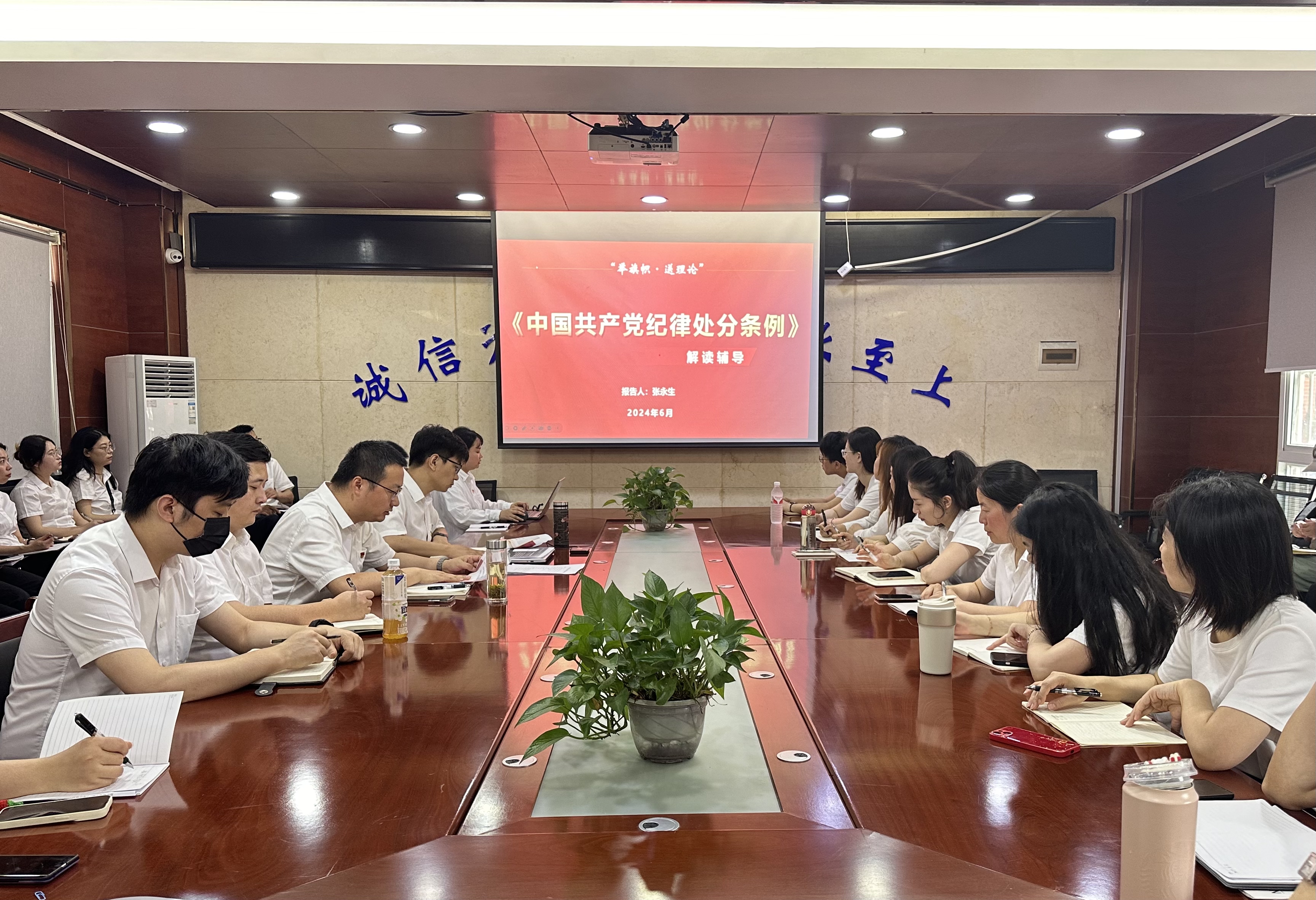 张永生领学修订后的《中国共产党纪律处分条例》,并结合“建工二建全体职工大会暨集团工作组专项调查建工二建情况反馈的会议精神”深入解读六项纪律修订的丰富内涵和主旨要义。