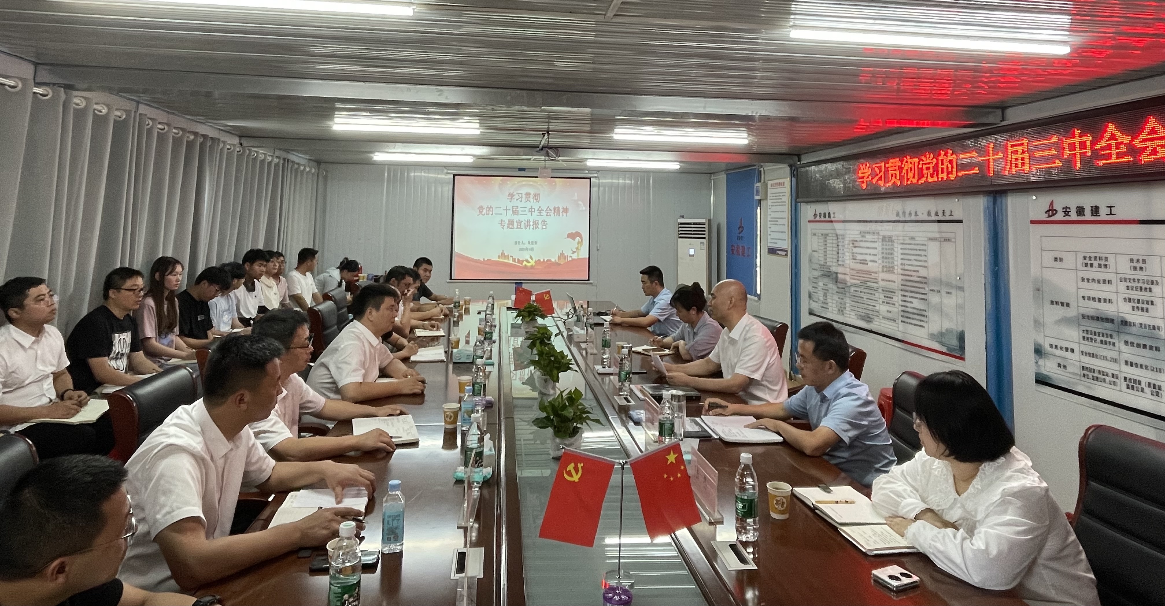 下午,朱忠明在宿徐园区城镇一体化A、B地块项目会议室集中宣讲党的二十届三中全会精神,并结合公司当前实际情况,深入分析解读公司三年发展目标和五项年度重点任务。