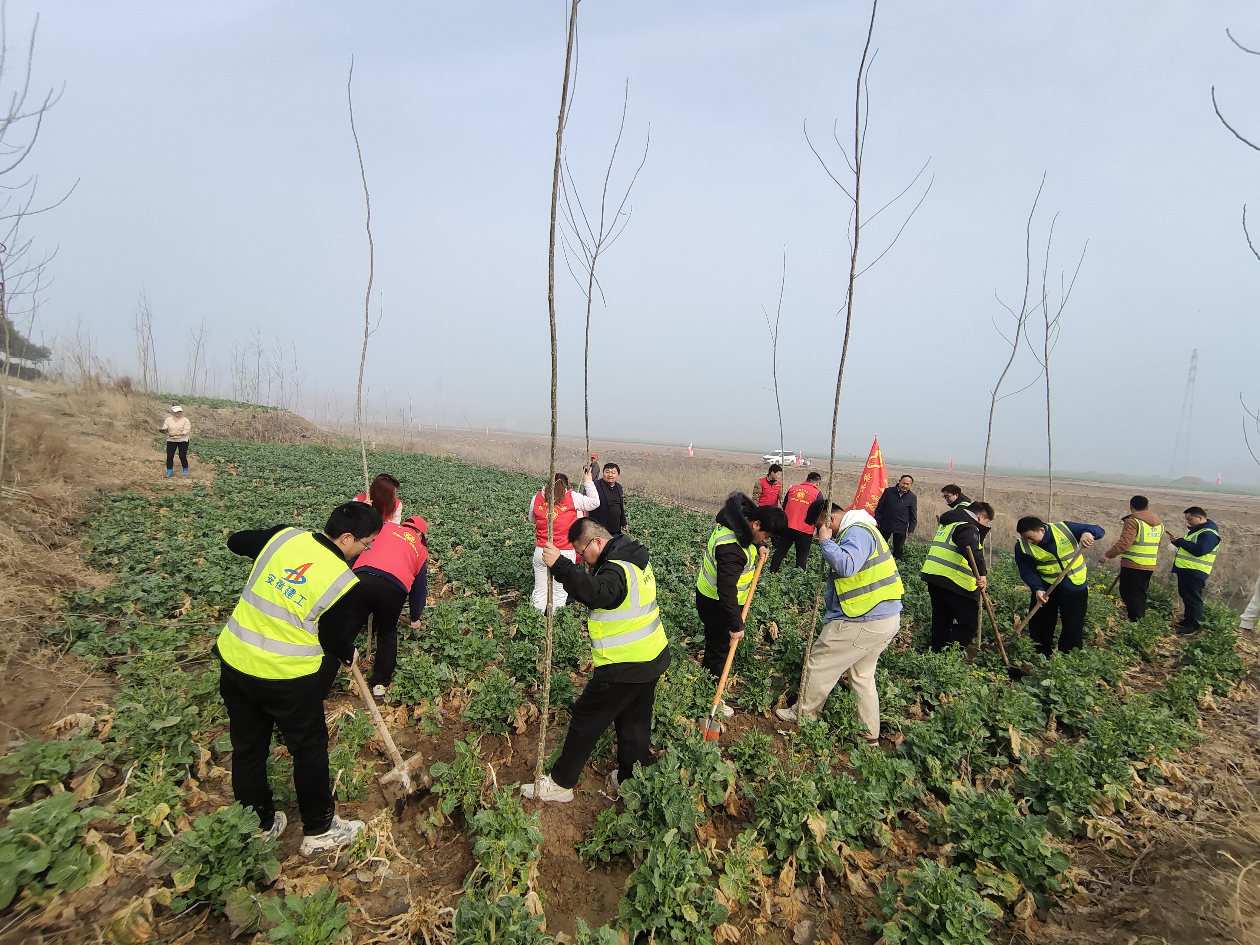 活动现场,项目部员工与镇政府职工热情高涨,干劲十足。经过一上午的辛勤劳动,百余株新栽种的树苗迎风挺立,为初春的大地增添了勃勃生机。