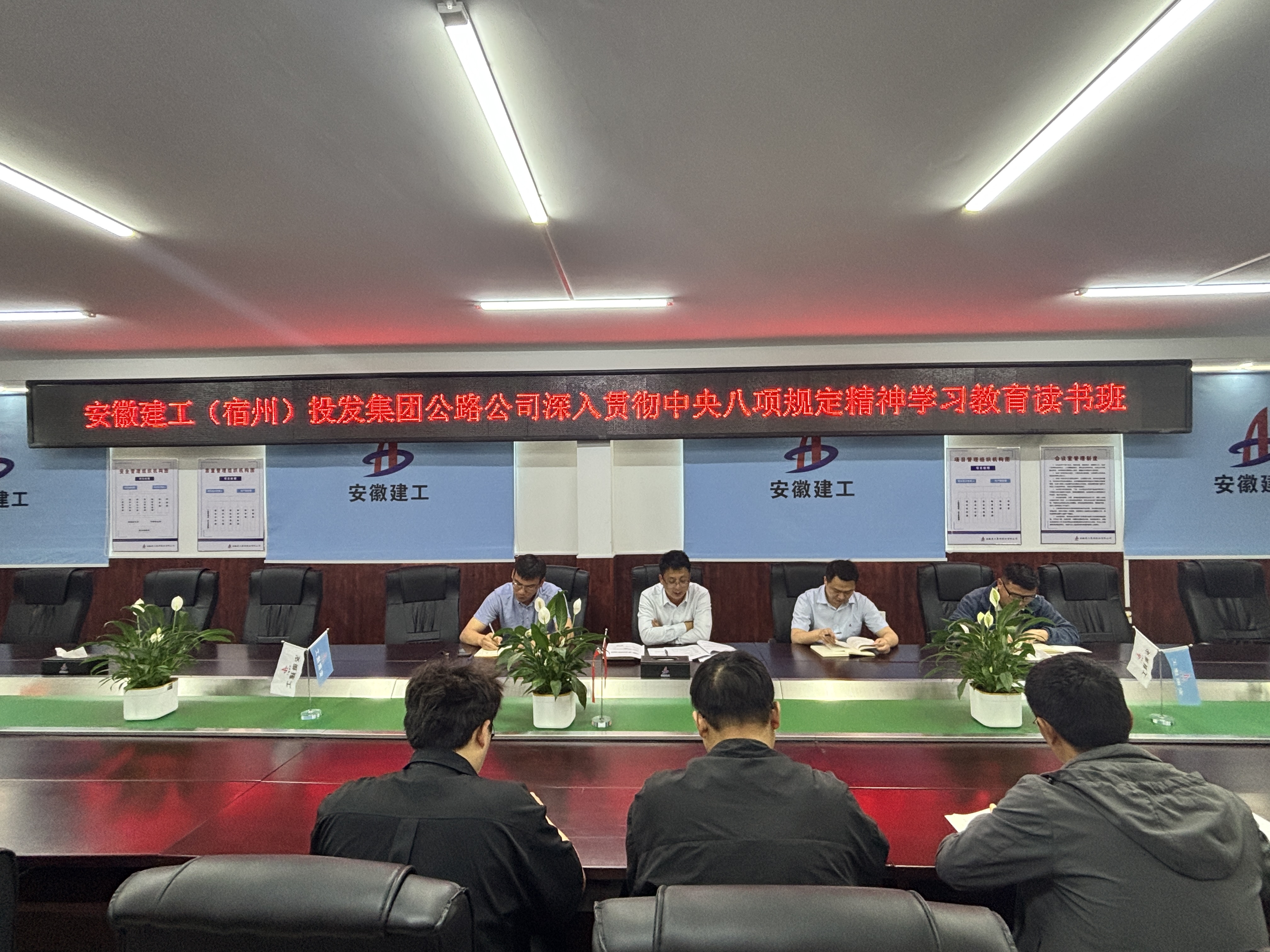近日,宿州投发公路公司举办深入贯彻中央八项规定精神学习教育读书班。公路公司党支部副书记、副经理郭文镖领学,S02徐商高速路基一标二分部项目班子成员及全体党员参会并开展研讨。