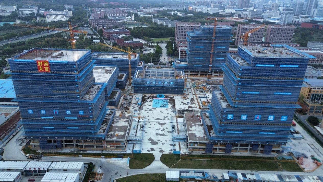 近日,安徽建工科研试验基地项目1号楼顺利完成主体结构封顶,标志着项目建设取得阶段性成果。