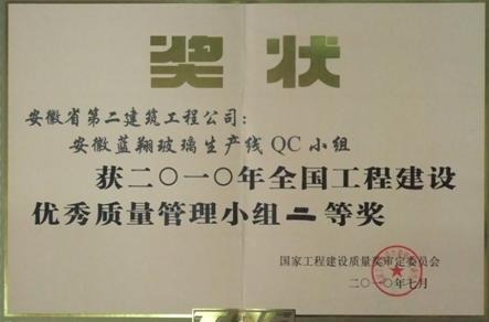 2010年6月28日—7月3日,2010年度全国工程建设行业优秀质量管理小组成果发表会在昆明市举行。此次参赛的QC成果,均由各省、市(行业)评选、推荐,再在本次会议上发表。来自全国建设行业各单位代表共发表QC成果576项,发表时,由评委现场质询、打分。经过紧张激烈的角逐,我公司发表的QC成果《控制大体积混凝土施工裂缝》获得二等奖。