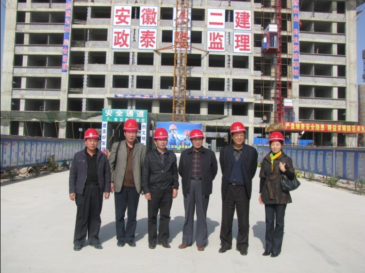 2010年11月12日,集团纪委书记、工会主席刘振武率集团工会一行,在二建公司工会主席李林的陪同下,到安徽二建承建的界首人民医院东城分院工程检查“争创优秀项目部、争当优秀项目经理”即“双争”竞赛工作。刘振武书记对项目部在开展以“五比五赛”为内容的“双争”竞赛中,着力抓好工程质量、安全、文明施工双示范和项目成本、效益方面给予充分肯定,认为是安徽二建在合作项目上成功开展“双争”竞赛的尝试和亮点,希望继续强化管理,健全各项管理机制,进一步拓展如何开展合作项目“双争”竞赛工作新路,为推进集团公司科学发展做出新的贡献。