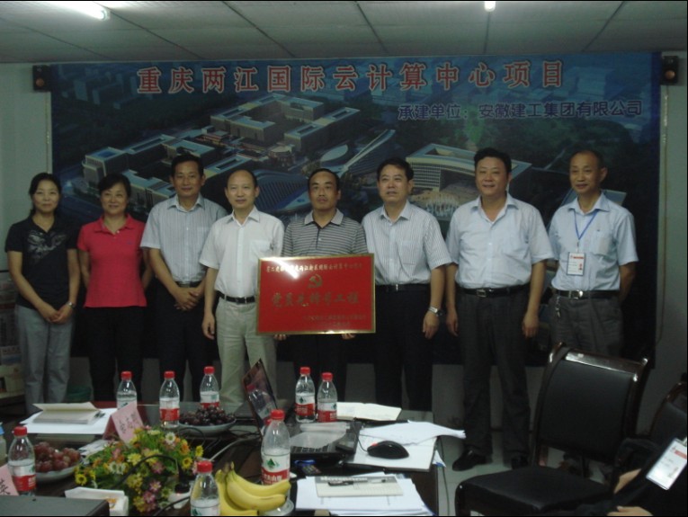 8月15日上午,集团公司总经理、副董事长、党委副书记赵时运,副董事长、党委副书记李长斌,纪委书记、工会主席牛曙东,党委工作部主任胡建英,工会女工委主任胡爱红,办公室副主任余志刚一行,在省二建公司总经理戴树明、副总经理刘国良等陪同下,冒着40℃ 的高温到重庆两江国际云计算中心项目检查指导工作,并为该项目“党员先锋号工程”授牌。