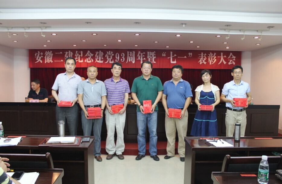 7月1日下午,安徽二建党委在三楼会议室召开了纪念建党93周年暨“七一”表彰会。公司两级领导班子成员、受表彰的先进基层党组织代表、优秀共产党员、优秀共产党员示范岗、部分在岗党员和“我与安徽建工梦”征文获奖代表共70多人参加会议。