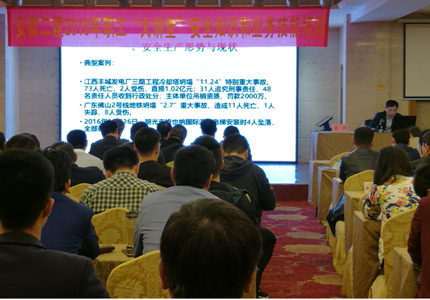 公司特别邀请了安徽省建设行业质量与安全协会秘书长兼任法人代表步向义,集团公司安全监察局副主任葛辉、主管王忠东,公司工程管理部副主任丁立群为学员进行系统的培训。
