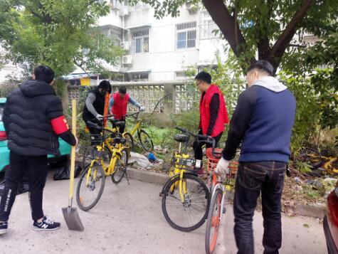早上8点,所有参加活动的青年志愿者准时在公司大门前集合, 前往裕溪路社居委,在社区工作人员的配合下清理公司生活区绿化带中的各类垃圾以及隐藏在绿化带中的破旧共享单车。