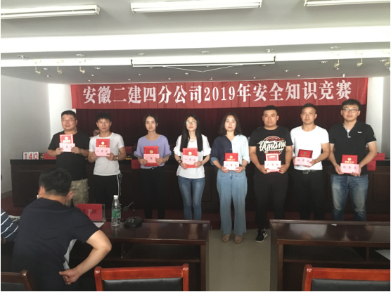竞赛分为个人必答、小组必答、抢答和风险选择四个环节,来自湖北、河南、江西、合肥、临泉5个项目部和分公司机关共八支代表队展开了激烈的角逐。参赛选手事先做了充分准备,竞赛过程紧张激烈,最后分公司机关第一代表队王茹、吴茜搭档脱颖而出,在本次比赛中一举夺魁。