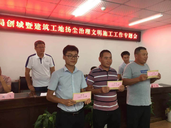 固镇县住建局创城暨建筑工地扬尘治理文明施工工作专题会于2019年8月16日在固镇县住建局会议室召开,安徽二建五分公司承建的固镇名邦国际花都项目在在建工地评分中以97分荣获第二名。