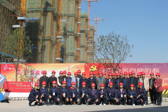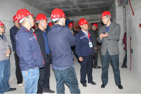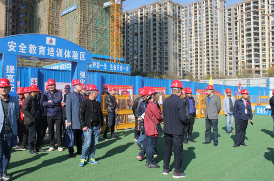 项目党支部书记、生产经理郑章乐从项目概况、党建工作的开展、安全文明施工、质量管控和进度等方面向观摩人员介绍。观摩团一行参观了安全教育培训体验区、建设高层内部区、砂石堆放区、雨水系统收集图。