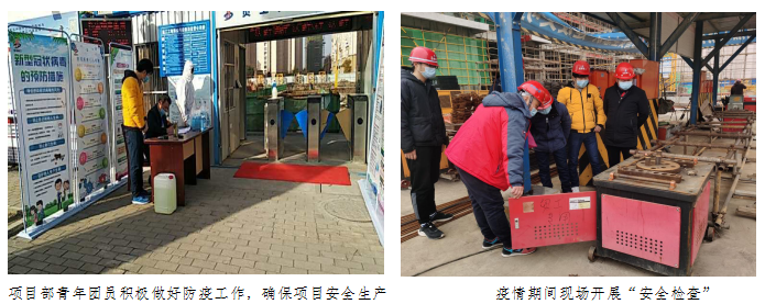 一手抓疫情防控,一手抓复工复产。青年团员在做好本职工作的同时,积极协助项目部做好复工复产工作。通过对返岗人员进行体温测量、严格进行实名制登记、摸排劳务人员活动轨迹、编制“一人一表”,对施工作业现场及大型机械设备进行安全检查,对办公区、生活区采取“日消毒”及作业面醒目位置悬挂防疫专题广告、标语等方式,坚决做到对疫情的严防死守、群防群控。青年团员在项目经理的带领下对现场安全、质量进行检查,对防护措施不到位处要求立即整改,确保员工的生命安全和项目复工复产。