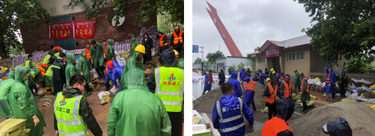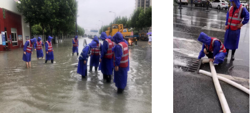 为积极响应瑶海区政府和公司抗洪抢险号召,7月18日二分公司第一时间成立两支抗洪抢险突击队,准备雨衣、雨鞋、铁锹、水泵、配电箱、电缆等物资20分钟极速赶到抗洪前线,代表公司参加瑶海区住建局统一调度抗洪抢险工作,救灾现场有的架设水泵、有的铺设电缆、有的配合抽水排涝,分工明确、争分夺秒,力争将群众的损失降到最低。