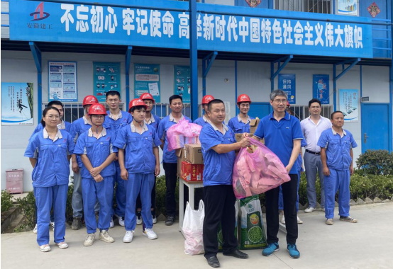 7月31日下午,烈日炎炎,暑气蒸人,公司副总经理余华恒、工会女工主任王俊一行赴文一·塘溪津门、文一·春风里项目送清凉,看望和慰问奋战在施工一线项目管理人员。