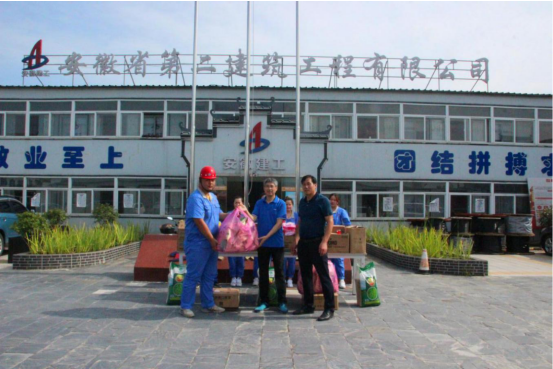 余华恒为一线职工送来绿豆、白糖、毛巾、洗发水、沐浴液、十滴水、仁丹等防暑降温用品,并细致的询问了工程进度、施工质量、安全文明等方面情况,同时要求项目管理人员,一定要做好高温季节施工防暑工作,切实将安全放在首位,确保安全生产。