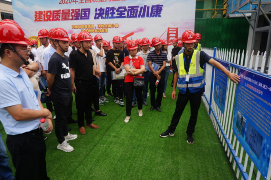 为贯彻落实2020年质量月“建设质量强国 决胜全面小康”的主题精神,更好地提高技术质量管理水平。9月15日,安徽二建公司组织开展了2020年质量月宣传活动暨项目现场观摩会。参加本次观摩的有公司党委副书记、总经理陆勤斌,副总经理叶和永,总工程师邱立龙及相关部门负责人、分公司领导、相关科室、项目部技术质量管理人员等共120余人参加。