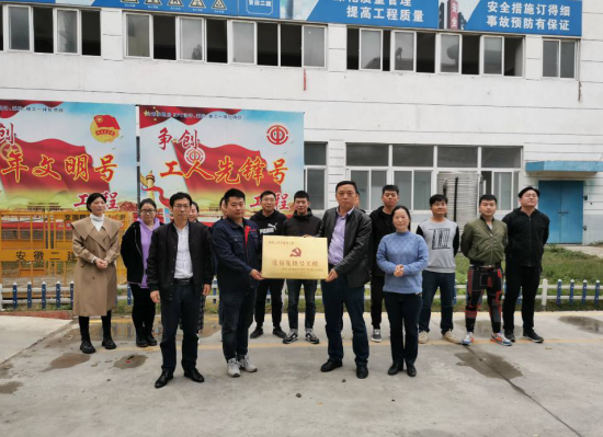 2020年11月18日,安徽二建党委副书记、纪委书记仇多维、党工部主任施用宏等一行赴蚌埠山香安置房EPC项目对“党员先锋号”、“工人先锋号”、“青年文明号”的创建工作进行验收。