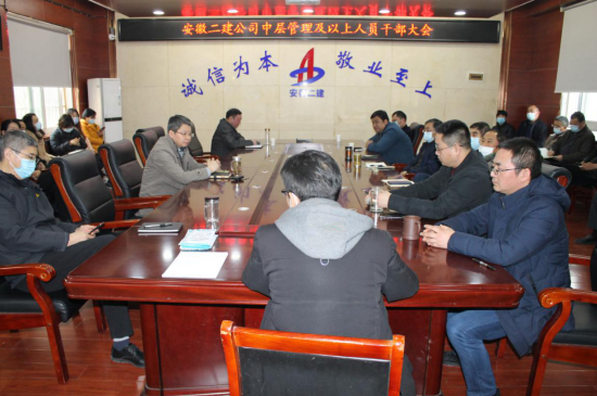 为进一步加强干部队伍建设,推动企业更好更快发展。2月4日,安徽二建公司召开中层管理及以上人员干部大会。公司领导、机关部门负责人、分公司党政主要领导、部分职工代表参加,会议由公司党委工作部主任施用宏主持。