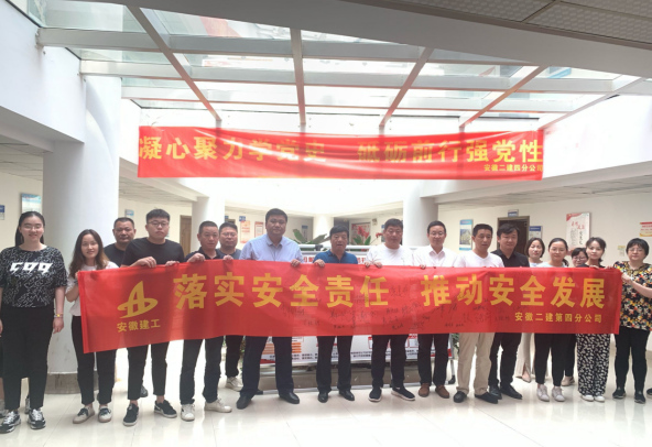 6月1日上午,安徽二建公司在六分公司文一春风里项目举行“安全生产月”启动仪式,公司安委会成员,安全管理部、工会全体人员,所属各单位分管安全、质量副经理、安全科长,在肥项目经理共百余人参加。