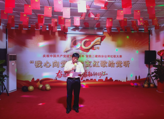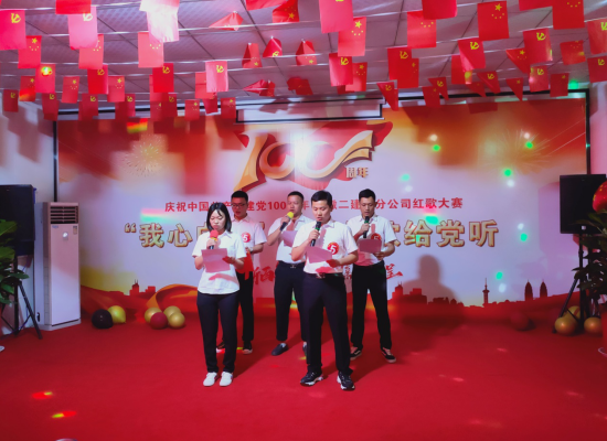 6月24日晚,由四分公司党支部、工会、团支部联合举办的“传唱红歌、歌颂祖国”纪念建党100周年主题红歌赛在宿州三馆一院一中心PPP项目部会议室隆重举行,机关科室和所属项目部的十六支队伍参加了比赛,用歌声颂党,以行动献礼。