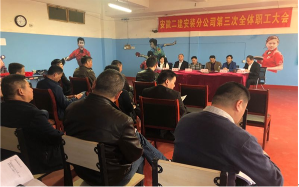 按照公司的统一部署和要求,安装分公司于3月28日上午,召开了2017年职工大会,分公司全体职工参加会议,会议由分公司党支部书记朱庆年主持。公司工会主席李林到会指导。