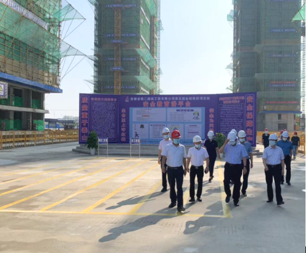覃卫国一行察看了项目施工现场,认真听取了项目经理徐良对项目工程概况、现场安全文明施工及疫情防控工作的详细汇报。他对现场安全管控及疫情防控工作给予了充分肯定,并提出要进一步强化落实企业主体责任和部门监管责任,加强信息技术推广应用与安全监管创新,有效提升监管效能,筑牢安全生产和疫情防控坚强防线。