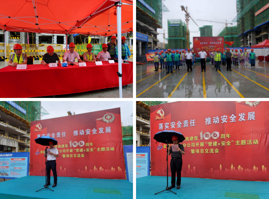 6月19日上午,分公司经理马福才宣读了本次活动的方案,他表示要把党建工作融入到项目的安全生产中,结合日常安全管理工作和专项安全治理,扎实有效推动安全发展。随后,公司安全总监、安全管理部主任曹建为活动致辞,他强调“安全责任重于泰山”,我们要进一步提高政治站位,不断增强抓好安全生产工作的责任感和使命感,以铁的担当、严的措施、硬的作风,抓实抓细安全生产各项工作,为建党一百周年大庆营造安全稳定的环境。接下来,全体人员参加了安全生产月宣誓活动。最后,在《我和我的祖国》大合唱中结束了上午的活动。