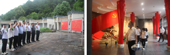 6月20日上午,分公司党支部组织党员干部、入党积极分子共计20余人,从铜陵吾悦华府项目部出发,前往泾县新四军军部旧址和皖南事变烈士陵园,开展党史学习教育现场教学,深刻缅怀革命先烈的丰功伟绩。一行人先后瞻仰了军长叶挺、副军长项英等老一辈革命家的办公室和起居室,观看了革命文物、史料图片和伟人题字,实地感受革命队伍在艰苦的物质环境和复杂的政治环境下,矢志不渝、抗战到底的铁军精神,洗涤了党员们的心灵,激励了党员们的斗志。在皖南事变烈士陵园纪念广场,党员们举行了庄重的宣誓仪式,重温了入党誓词。