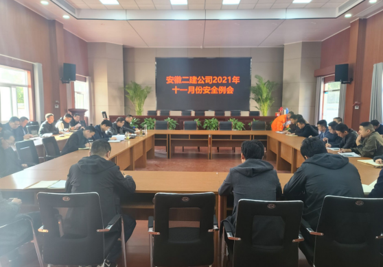 11月10日下午,安徽二建公司召开了2021年11月份安全专题会议。公司副总经理叶和永出席会议并讲话,安全总监、安全管理部主任曹建主持会议。安全管理部全体人员,各单位安全分管领导、安全科长,合肥地区各项目负责人、安全负责人参加了会议。